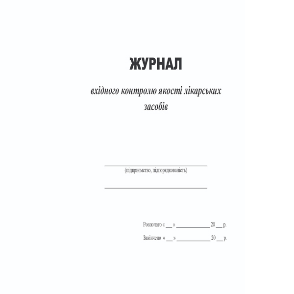 Журнал вхідного контролю якості лікарських засобів А4 48 с., офсет