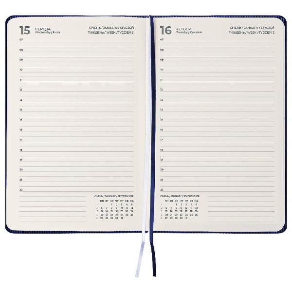 Тверда обкладинка допомагає зберегти акуратний та презентабельний вигляд протягом довгого часу. Якісний кремовий папір щільністю 80 г/м2 добре вбирає чорнило та забезпечує комфортне письмо. Зручно робити записи, креслити та малювати. Щоденник має датований блок у лінію на кожний день .