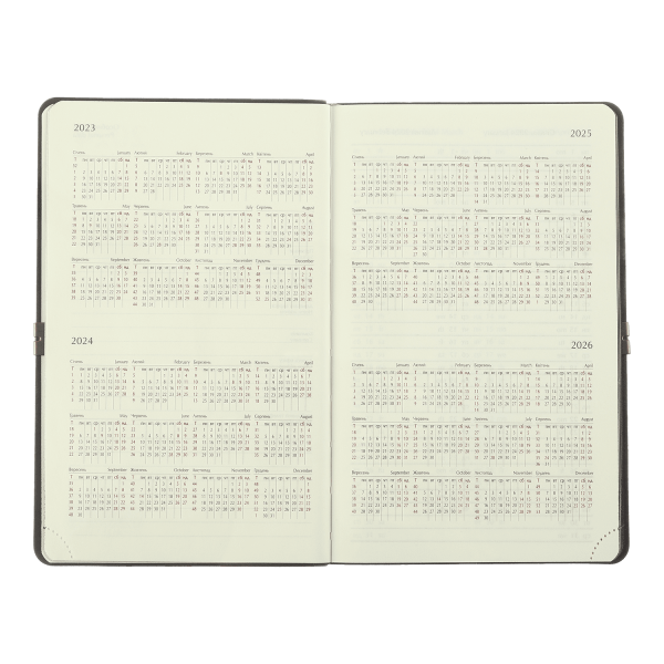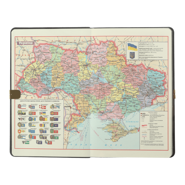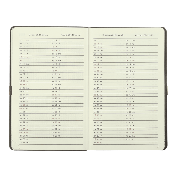 Гнучка обкладинка щотижневика IDEAL виконана з штучної шкіри з фактурою натуральної шкіри. Гармонійно доповнює дизайн тиснення року на лицьовій стороні обкладинки та тонований зріз внутрішнього блоку в колір обкладинки.