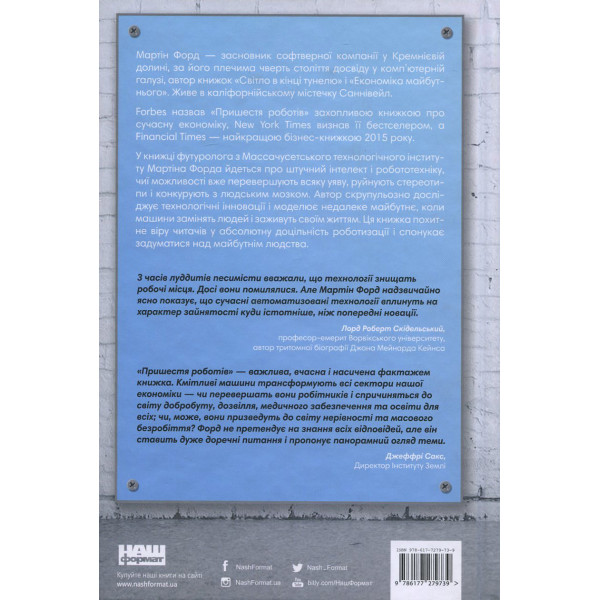 У книжці футуролога з Массачусетського технологічного інституту Мартіна Форда йдеться про штучний інтелект і робототехніку, чиї можливості вже перевершують всяку уяву, руйнують стереотипи і конкурують з людським мозком. ... Детальніше...