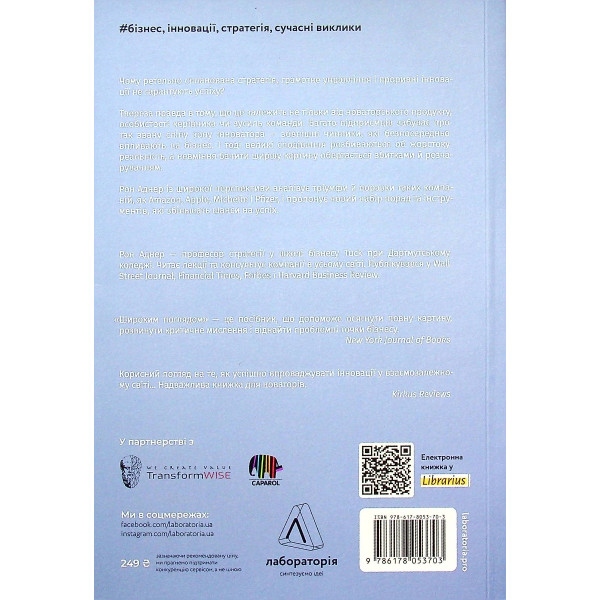 Чому компанії із чіткою стратегією, інноваційним продуктом і натхненними лідерами на чолі все одно зазнають невдачі? Експерт з інновацій Рон Аднер уже понад десятиліття досліджує першопричини перемог та поразок у бізнесі... Детальніше...