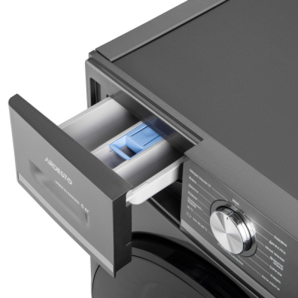 Особливості графічний світлодіодний дисплей, звуковий сигнал закінчення програми, індикація режиму роботи, індикація залишку часу до закінчення прання, індикація блокування дверцят