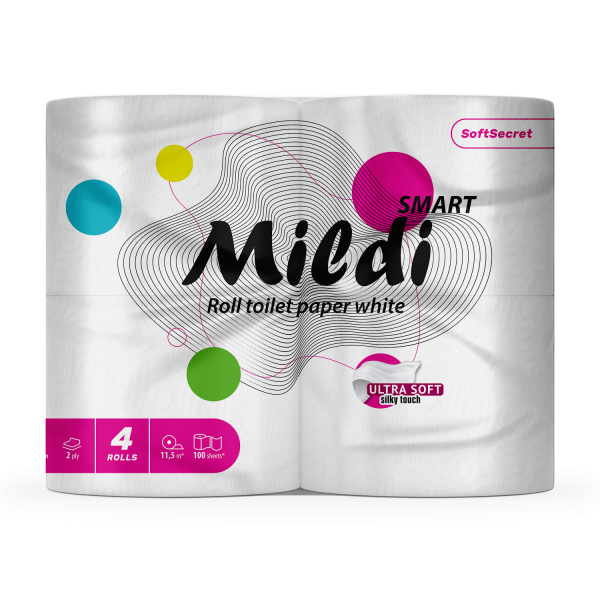 Двошаровий папір туалетний Mildi Smart виготовлений із 100% целюлози, має тиснення з ламінацією та перфорацію. Особлива технологія виробництва забезпечує міцність , м’якість та комфорт при використанні. Діаметр рулону 10... Детальніше...