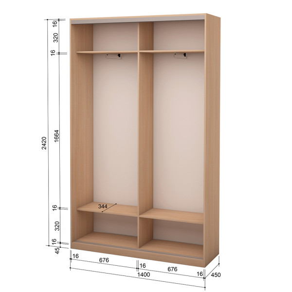 Шафа-купе ROKO – місткий, компактний та недорогий елемент вашого інтер\'єру, що відрізняється особливою функціональністю та ергономічністю. Корпус шафи-купе ROKO виготовлений із міцної ламінованої ДСП завтовшки 16мм, ДСП фасади – 10мм. Шафа встановлюється на регульовані ніжки, які дозволяють виставити шафу рівно. Зовнішні деталі закромковані ПВХ 2 мм, полиці та ящики – о,5мм. Розсувна система у кольорі срібло. У комплекті передбачені стійкові, дах, дно, внутрішнє наповнення (полиці, труби), напрямні, двері та комплект фурнітури. Шафа відвантажується в розібраному вигляді, проте в комплекті є інструкція зі збирання, яка спростить завдання і збирачам з досвідом, і тим, хто ніколи раніше не стикався зі збиранням меблів. Прямо в каталозі ви можете детально вибрати зовнішнє оформлення (колір, фасади), конфігурацію (наповнення) і габарити шафи-купе. Завдяки універсальній заводській присадці під час встановлення ви можете змінити розташування внутрішнього наповнення – змінити його дзеркально або збільшити/зменшити відстань між елементами. Полиці встановлюються з кроком 320мм. Загальна висота шафи 242 см. Будь-яку шафу можна доукомплектувати радіусним приставним елементом і ящиковим блоком. Для цього необхідно придбати товар відповідного розміру окремо у каталозі. Висувні ящики можна монтувати між будь-якими двома полицями шафи. Шафа відвантажується в розібраному та упакованому вигляді. Упаковка – гофрокартон. У комплекті: дах, дно, бічні стійки, задня стінка ДВП, комплект фурнітури, деталі для внутрішнього наповнення, фасади, інструкція зі збирання.