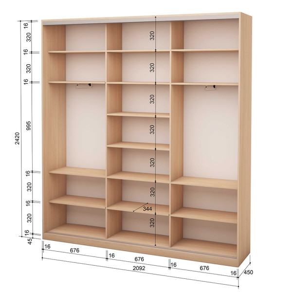 Шафа-купе ROKO – місткий, компактний та недорогий елемент вашого інтер'єру, що відрізняється особливою функціональністю та ергономічністю. Корпус шафи-купе ROKO виготовлений із міцної ламінованої ДСП завтовшки 16мм, ДСП фасади – 10мм. Шафа встановлюється на регульовані ніжки, які дозволяють виставити шафу рівно. Зовнішні деталі закромковані ПВХ 2 мм, полиці та ящики – о,5мм. Розсувна система у кольорі срібло. У комплекті передбачені стійкові, дах, дно, внутрішнє наповнення (полиці, труби), напрямні, двері та комплект фурнітури. Шафа відвантажується в розібраному вигляді, проте в комплекті є інструкція зі збирання, яка спростить завдання і збирачам з досвідом, і тим, хто ніколи раніше не стикався зі збиранням меблів. Прямо в каталозі ви можете детально вибрати зовнішнє оформлення (колір, фасади), конфігурацію (наповнення) і габарити шафи-купе. Завдяки універсальній заводській присадці під час встановлення ви можете змінити розташування внутрішнього наповнення – змінити його дзеркально або збільшити/зменшити відстань між елементами. Полиці встановлюються з кроком 320мм. Загальна висота шафи 242 см. Будь-яку шафу можна доукомплектувати радіусним приставним елементом і ящиковим блоком. Для цього необхідно придбати товар відповідного розміру окремо у каталозі. Висувні ящики можна монтувати між будь-якими двома полицями шафи. Шафа відвантажується в розібраному та упакованому вигляді. Упаковка – гофрокартон. У комплекті: дах, дно, бічні стійки, задня стінка ДВП, комплект фурнітури, деталі для внутрішнього наповнення, фасади, інструкція зі збирання.