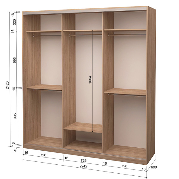 Шафа-купе ROKO 3 двері (ДСП) 3.222.242.60-3 (2242*600*2420Н)