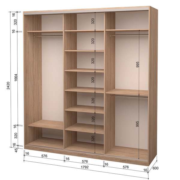 Шафа-купе ROKO 3 двері (ДСП) 3.262.242.60-3 (1792*600*2420Н)