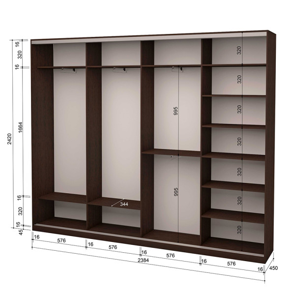 Шафа-купе ROKO 4 двері (2 ДСП + 2 дзеркала) 4.2226.242.45-2 (2384*450*2420Н)