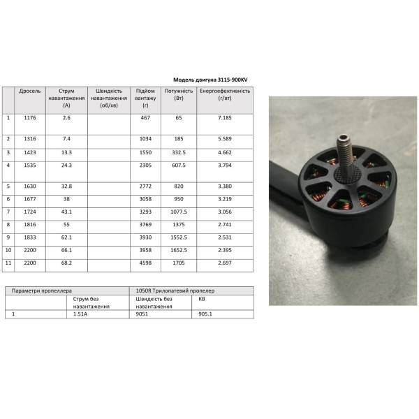 • Двигун: 3115-900KV;