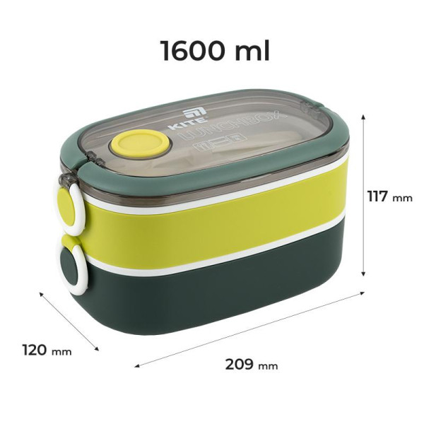 Ланчбокс подвійний Kite K25-1181-3 1600 мл — універсальний та місткий контейнер для повноцінного обіду, який адаптується під ваш ритм життя. Ідеальний для школи, офісу, прогулянок, пікніків і подорожей. Завдяки двом відділенням із додатковими кришками, ви самі вирішуєте, скільки взяти з собою: одну ємність чи обидві одразу.