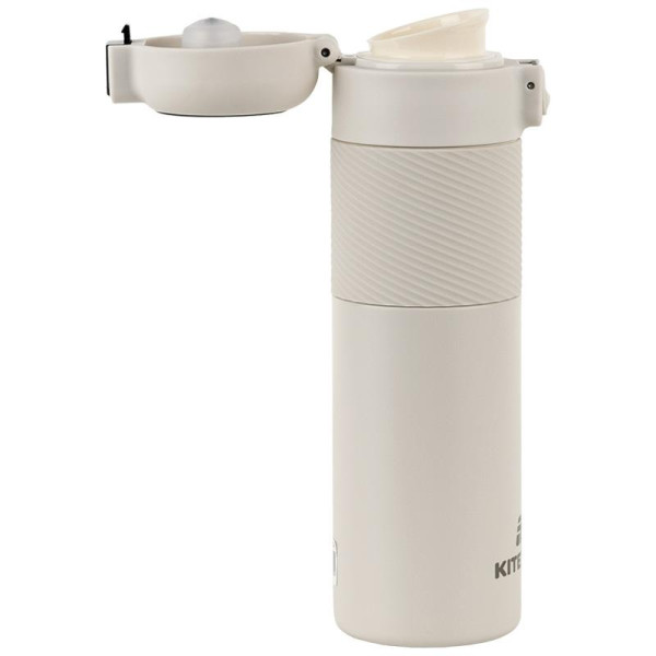 Кришка відкривається натисканням кнопки – цей механізм захищає напій від випадкових проливань.