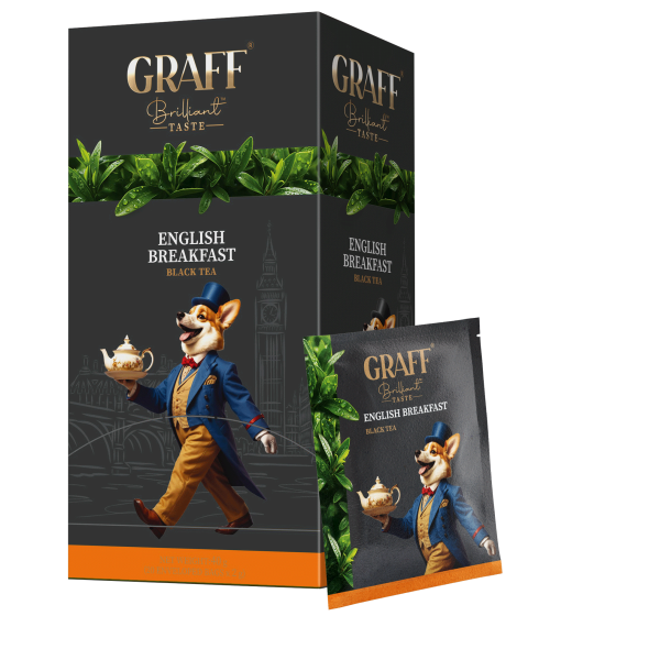 Чай чорний байховий GRAFF "English Breakfast" Фасування: 40 г (20 сашетів по 2 г) Класичний чорний байховий чай із глибоким насиченим смаком і характерною терпкістю, створений за традиційною англійською рецептурою. Ідеал... Детальніше...
