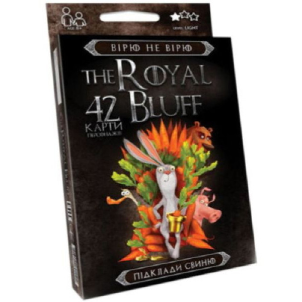 Виробник Danko ToysМодель Вірю не вірю (The Royal Bluff) чорні, українськаАртикул RBL-01-01UТематика картковіПризначення для дітейКількість гравців від 2Вікова група від 6 роківМатеріал картонРозміри коробки 13.5 х 9 х 2... Детальніше...
