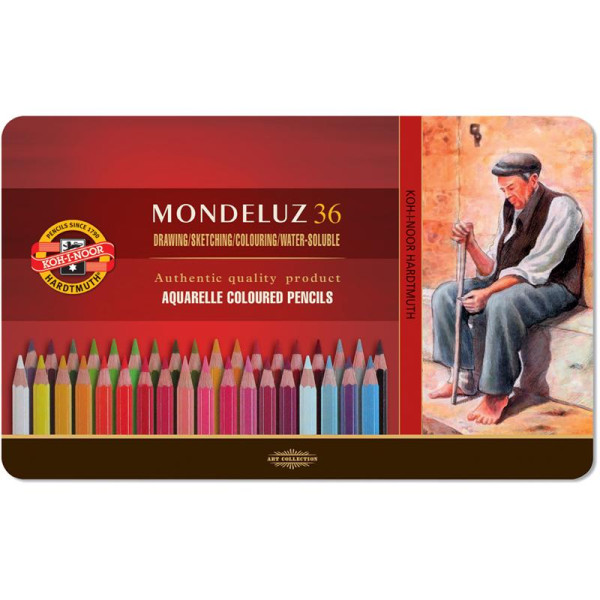 Олівці кольорові акварельні 36 кольор х 36 шт Koh-I-Noor "Mondeluz" в металевій коробці (3725)