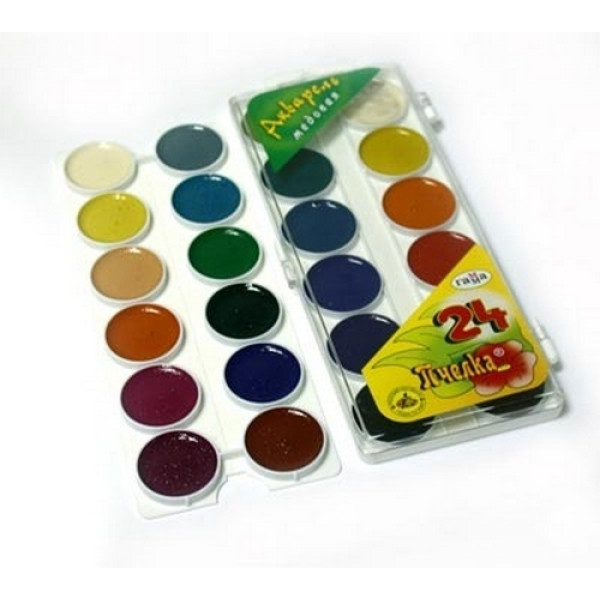 Фарби акварельні "Бджілка" з медовмісними добавками, напівсухі, 24 кольори, збільшений об'єм кювети 3,5 мл, пластикова упаковка з прозорою кришкою, з еврозавісом, без пензля. До складу входять медовмісні продукти. Пласти... Детальніше...