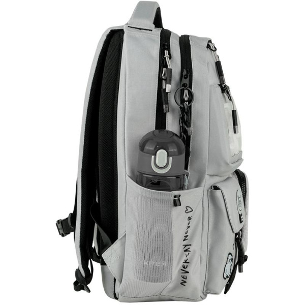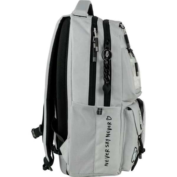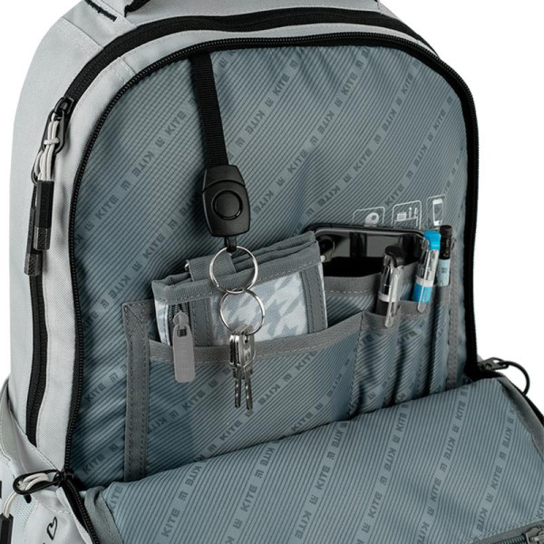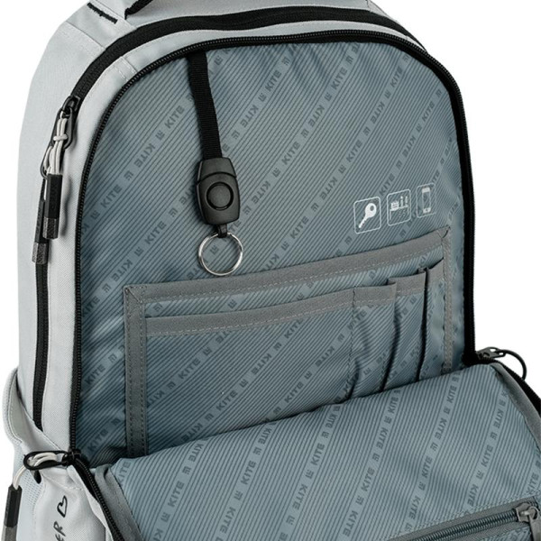 Рюкзак Kite Education teens 2587M-1 виконаний з міцного поліестеру. Модель рекомендована для дітей від 9-12 років, на зріст від 130-145 см. Рюкзак зовні: ортопедична дихаюча спинка Air Comfort; широкі м\'які лямки S-подібної форми; знімний нагрудний ремінь; передня кишеня з м\'якою флісовою підкладкою для окулярів; 3 об’ємні фронтальні кишені; 2 еластичні бічні кишені – для термоса або пляшечки з водою; потайна кишеня на спинці; м\'яка ущільнена ручка-переноска з EVA всередині та текстильна петля; посилене дно; високоякісна фурнітура; світловідбивні елементи; ефектний декор. Рюкзак всередині: 2 містких відділення; роздільники для книг та зошитів з фіксуючою резинкою; кишеня з флісом для планшета; кишеня із флісовою підкладкою для телефону; органайзер для канцелярії та дрібниць; кишеня на блискавці; знімна ключниця; міцна брендована підкладка; іконки навігації.