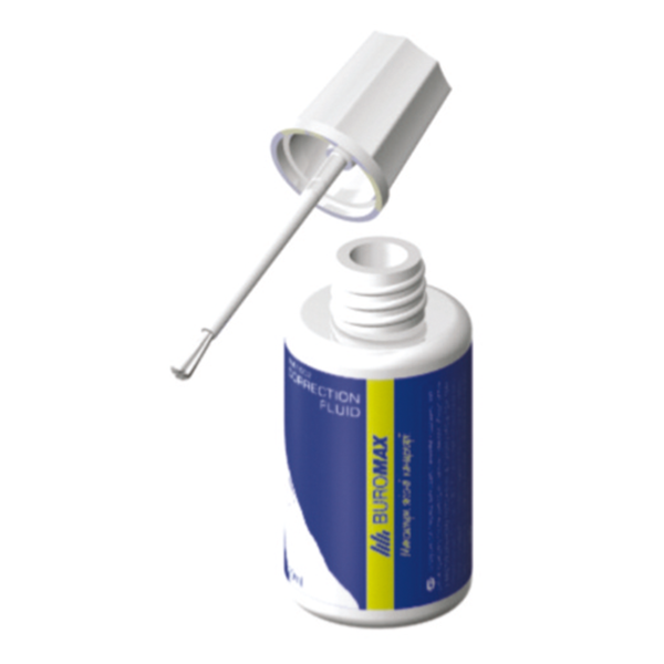 Коригувальна рідина з пензликом JOBMAX від BUROMAX – швидковисихаюча коригувальна рідина для рукописних і машинописних текстів, включаючи факсовий папір! Ідеально підходить для виправлень всіх видів чорнила! Зручна для коригування текстів великого об\'єму. Відмінне покриття тексту з першого разу. Коригувальна рідина на масляній основі – швидко сохне на папері, а у флаконі максимально довго не підсихає і залишається придатною до використання, термін придатності - 24 місяці. Морозостійка. Металева кулька-шейкер для збовтування всередині флакона.