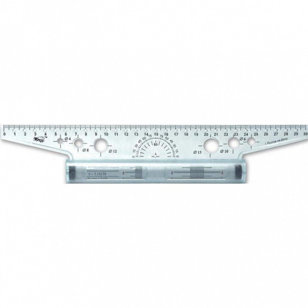 Лінійка-рейсшина Josef Otten K031 застосовується в креслярсько-конструкторських роботах висока точність дозволяє креслити паралельні, вертикальні і горизонтальні лінії шкала переміщень 300 мм з кроком 1 мм, написи виконані методом друку має чітку міліметрову шкалу поділок, транспортир, 6 кіл діаметром від 8 до 18 мм виготовлена з пластику, стійка до деформацій індивідуальна упаковка.