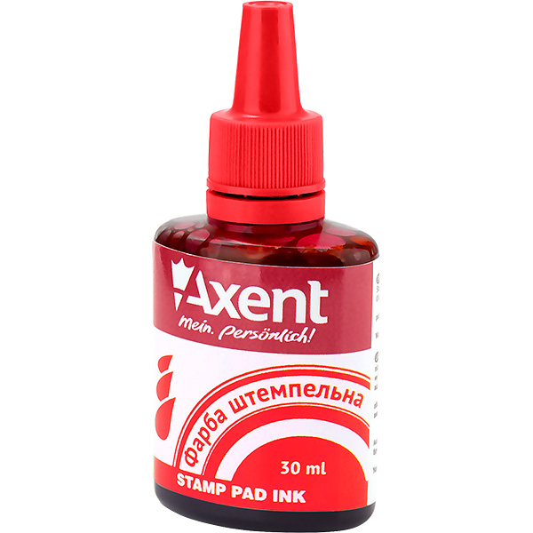 Фарба штемпельна для автоматичних і звичайних штампів, печаток. Об'єм - 30 мл. Колір червоний.Штемпельна фарба Axent призначена для автоматичних і звичайних штампів, печаток. На водній основі, добре підходить для простав... Детальніше...
