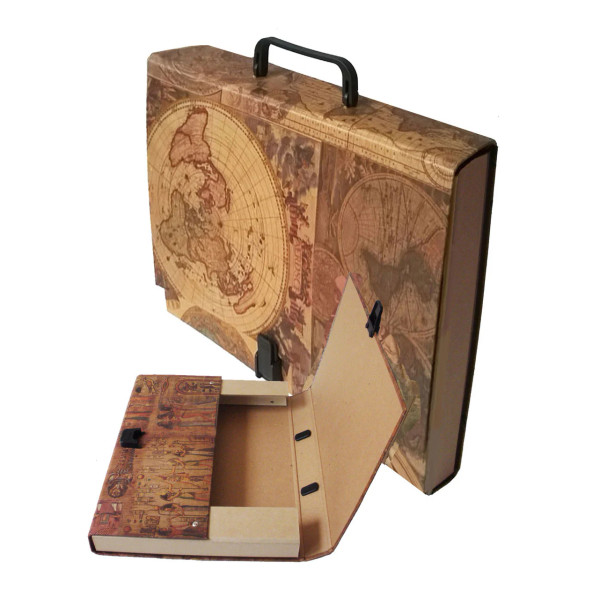 Картонний портфель - досить зручний інструмент для переміщення будь-яких документів, починаючи від бухгалтерських і закінчуючи презентаційними, тому може використовуватися в практиці досить-таки широко. Якщо говорити про картонному портфелі в шкільній повсякденності, то тут йому також знаходиться місце, адже учні можуть переносити в такому портфельчику свої ноти, якщо вони ходять в музичну школу або ж ескізи і малюнки, з фарбами та іншими образотворчими засобами, якщо вони навчаються в художній школі. Застосування портфеля для документів широко й різноманітно. Даний продукт виконаний з Палитурні картону з обклеюванням з КРАФТ паперу з повнокольоровим друком, всього доступно 4 (чотири) оригінальних дизайну, вигідно підкреслюють індивідуальність власника портфеля. Портфель в такому виконанні відрізняється стійкістю до зовнішніх пошкодженням і вологостійкість.
