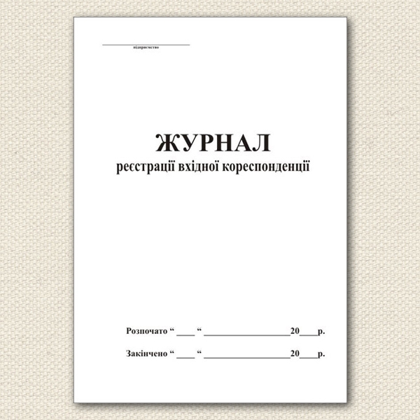 Журнал реєстрації вхідної кореспонденції, формат A4, 48 страниц, офсетная бумага, ориентация книжная... Читать далее...