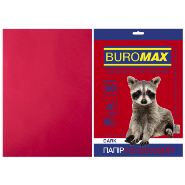 Бумага цветная А4 80 г/м кв BUROMAX 50 л DARK бордовая (BM.2721450-13)