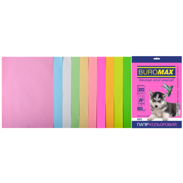 Бумага цветная А4 80 г/м кв BUROMAX Радуга 20 л PASTEL+NEON 10 цветов
