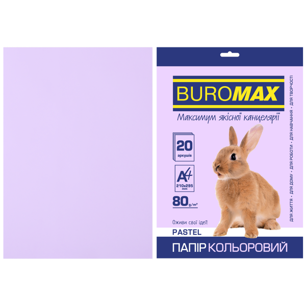 Бумага цветная А4 80 г/м кв BUROMAX 20 л PASTEL лаванд. (BM.2721220-39)