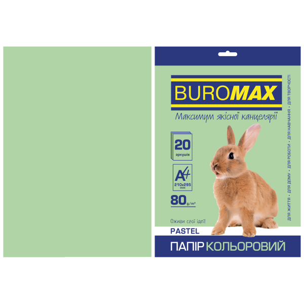 Бумага цветная А4 80 г/м кв BUROMAX 20 л PASTEL св.-зеленая (BM.2721220-15)
