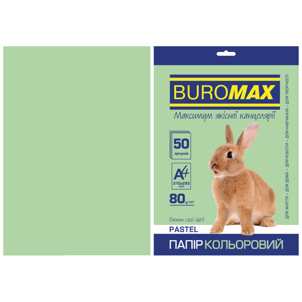 Бумага цветная А4 80 г/м кв BUROMAX 50 л PASTEL св.-зеленая (BM.2721250-15)