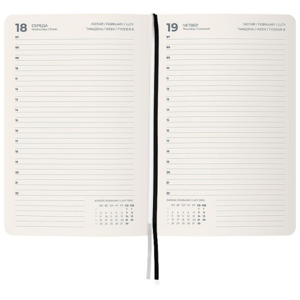 Мягкая обложка помогает сохранить аккуратный и презентабельный вид на протяжении долгого времени. Качественная кремовая бумага плотностью 80 г/м² хорошо впитывает чернила и обеспечивает комфортное письмо. Удобно делать записи, чертить и рисовать. Ежедневник имеет датированный блок в линейку на каждый день.