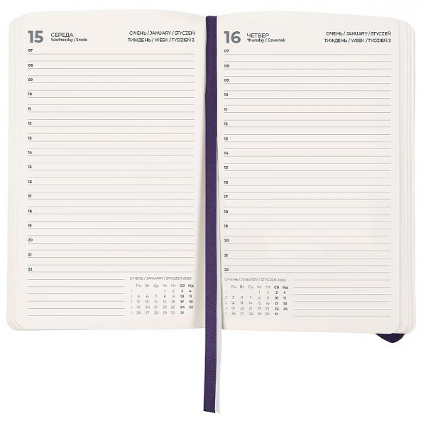 Мягкая обложка помогает сохранить аккуратный и презентабельный вид на протяжении долгого времени. Качественная кремовая бумага плотностью 80 г/м2 хорошо впитывает чернила и обеспечивает комфортное письмо. Удобно делать записи, чертить и рисовать. Ежедневник имеет датированный блок в линейку на каждый день.