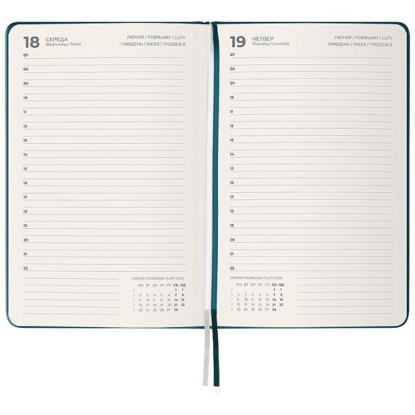 Твердая обложка помогает сохранить аккуратный и презентабельный вид на протяжении долгого времени. Качественная кремовая бумага плотностью 80 г/м2 хорошо впитывает чернила и обеспечивает комфортное письмо. Удобно делать записи, чертить и рисовать. Ежедневник имеет датированный блок в линейку на каждый день.
