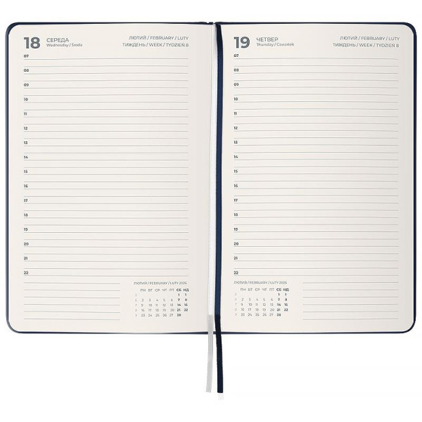 Твердая обложка помогает сохранить аккуратный и презентабельный вид на протяжении долгого времени. Качественная кремовая бумага плотностью 80 г/м2 хорошо впитывает чернила и обеспечивает комфортное письмо. Удобно делать записи, чертить и рисовать. Ежедневник имеет датированный блок в линейку на каждый день.