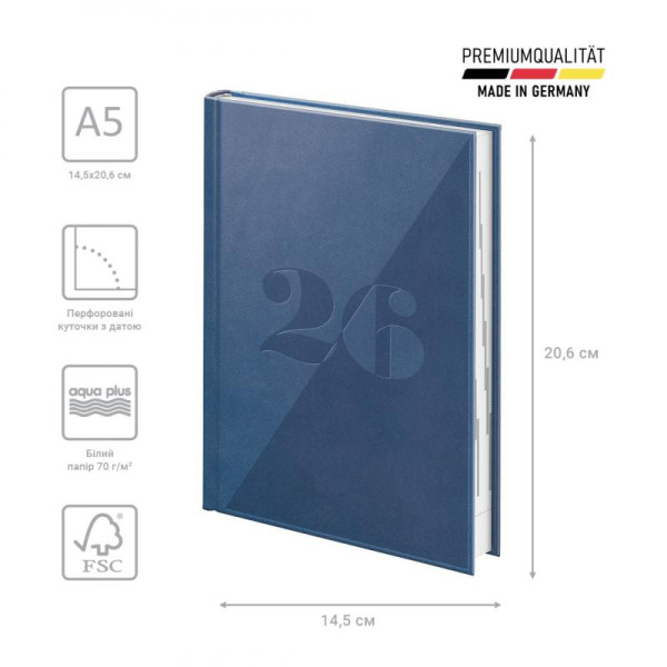 Ежедневник датированный 2026 А5 Brunnen Стандарт Torino Trend, синий (73-795 38 616)