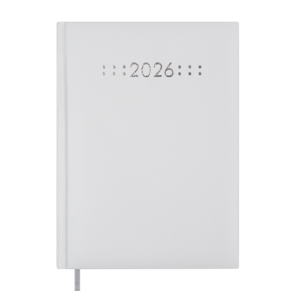 Жесткая обложка из бумвинила с поролоном ежедневника CLASSIC выполнена под фактуру натуральной кожи в классическом дизайне с яркими акцентами – тиснение года и декоративных элементов серебряной фольгой и тонированный серебром срез внутреннего блока.