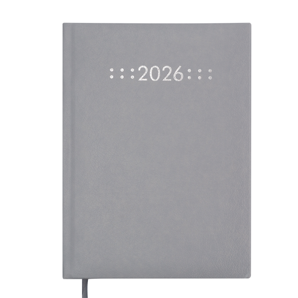 Жесткая обложка из бумвинила с поролоном ежедневника CLASSIC выполнена под фактуру натуральной кожи в классическом дизайне с яркими акцентами – тиснение года и декоративных элементов серебряной фольгой и тонированный серебром срез внутреннего блока.