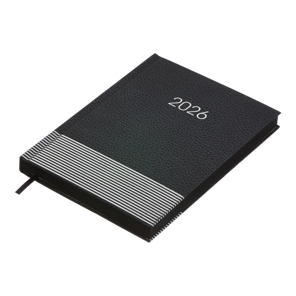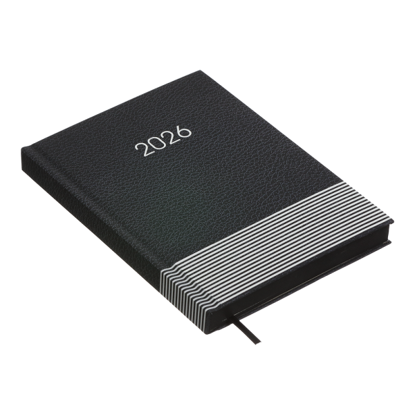 Жесткая полиграфическая обложка ежедневника PARALLEL выполнена в лаконичном, строгом дизайне со стильным фольгированием и визуальной текстурой натуральной кожи.