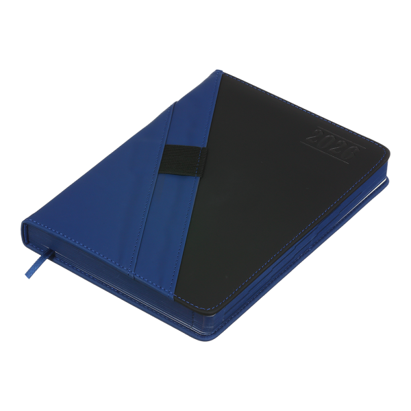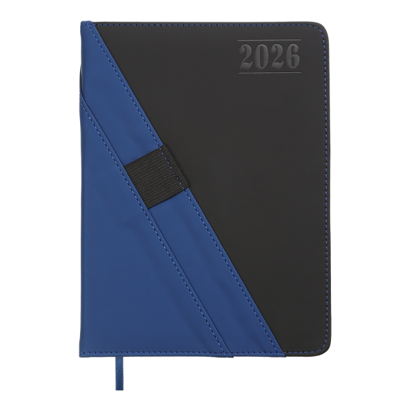Жесткая обложка ежедневника TRIUMPH выполнена из гладкой искусственной кожи с эффектом soft touch, с поролоном, в оригинальном и функциональном стиле, сочетающем материал двух контрастных цветов. Общий вид обложки завершают декоративный шов по периметру, по диагонали на стыке цветов, а также слепое тиснение года. Обложка содержит вшитую резинку для фиксации ручки. Гармонично дополняет дизайн тонированный в цвет обложки срез внутреннего блока.