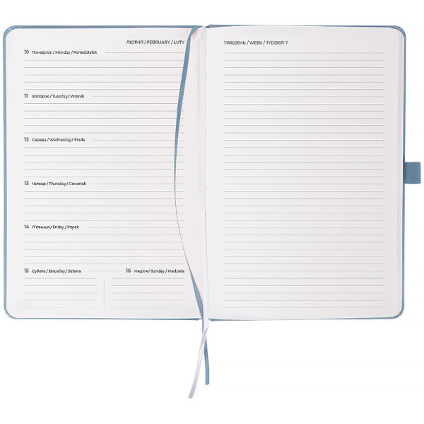 Твердая обложка из винила помогает сохранить аккуратный и презентабельный вид на протяжении долгого времени. Качественная кремовая бумага плотностью 80 г/м2 хорошо впитывает чернила и обеспечивает комфортное письмо. Удобно делать записи, чертить и рисовать. Еженедельник разделен на 2 части – датированный блок в линейку для удобного планирования дел и дополнительные страницы в линейку для ведения личных записей.