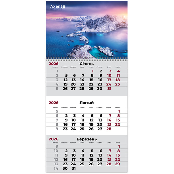 Календарь настенный квартальный Axent 8801-26-7-a на 2026 год – незаменимый помощник по планированию повседневных задач и подготовке отчетности. С ним вы всегда будете ориентироваться в датах, рабочих и выходных днях; оценивать продолжительность задач и планировать важные события.