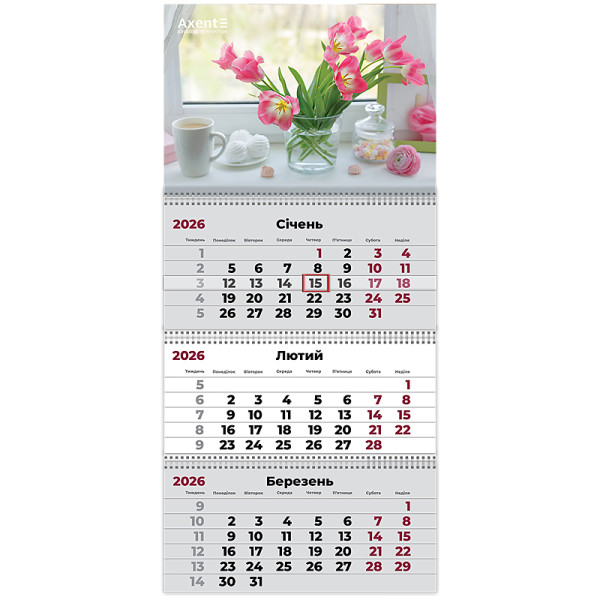 Календарь настенный квартальный на 2026 год Axent 8803-26-11-A с 3 пружинами – станет красивым украшением офиса и будет ежедневно напоминать вам о важных датах. Эффектный дизайн будет вдохновлять успешное планирование дел.