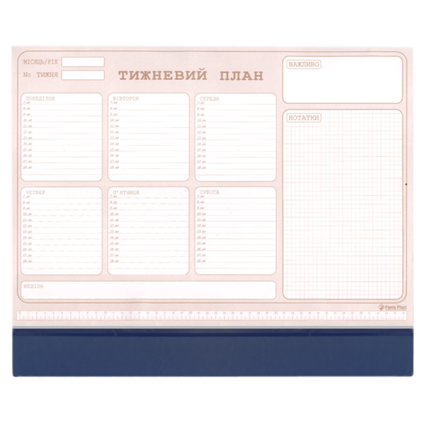 Настольный недельный планинг Panta Plast – помощник для делового планирования, который станет дополнительным атрибутом рабочего стола, как в офисе, так и дома. Предназначен для коротких заметок и составление расписания н... Читать далее...