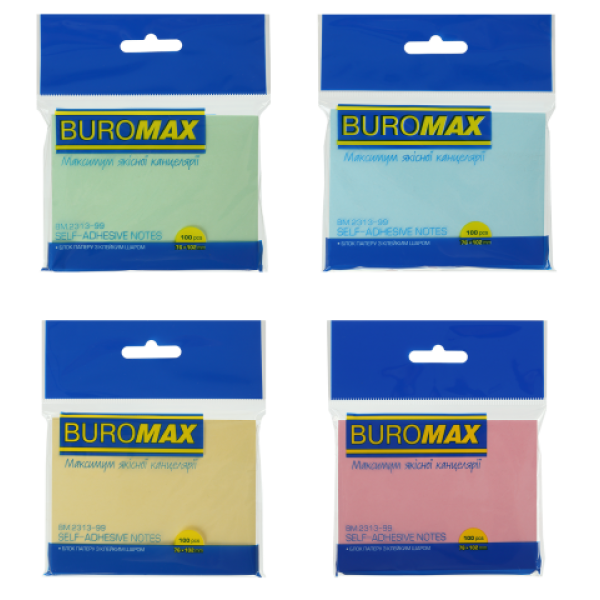 Блок стикеров 76 х 102 мм 100 шт BuroMax пастельные тона 75 г/м кв АССОРТИ (BM.2313)