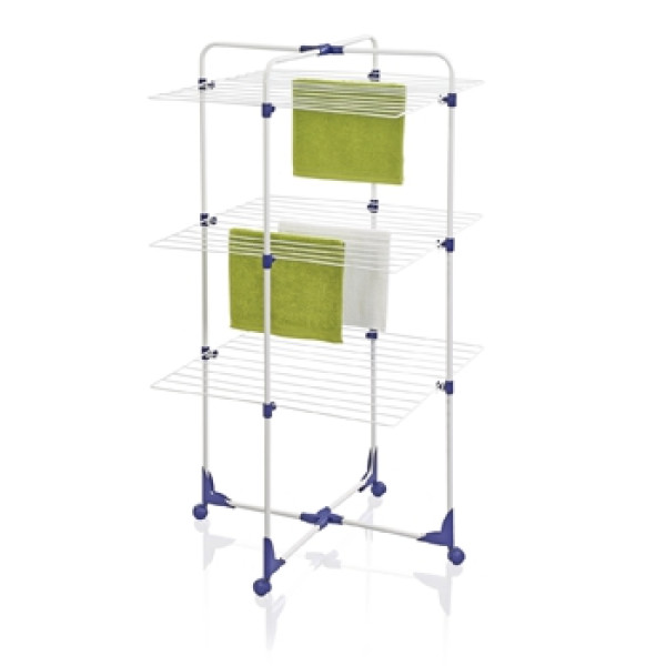 Напольная сушилка для белья Leifheit Tower 270 – наименьшая по высоте сушилка из серии функциональных напольных сушилок-«башень». Занимает минимальную площадь благодаря своей форме и имеет отличную устойчивость. Общая длина струн всех сушильных ярусов - 27 метров, что не смотря на небольшие размеры сушилки позволяет развесить большое количество вещей - до 3 загрузок стиральной машины. Каркас сушилки Leifheit Tower 270изготовлен из стали и покрыт качественной эмалью, струны самоочищающиеся, металлические и покрыты специальным пластиком.