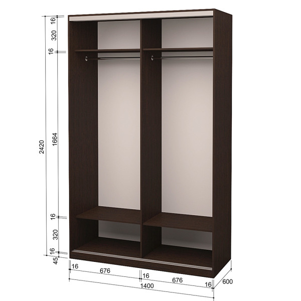 Шкаф-купе ROKO 2 двери (ДСП) 2.22.242.60-1 (1400*600*2420Н)