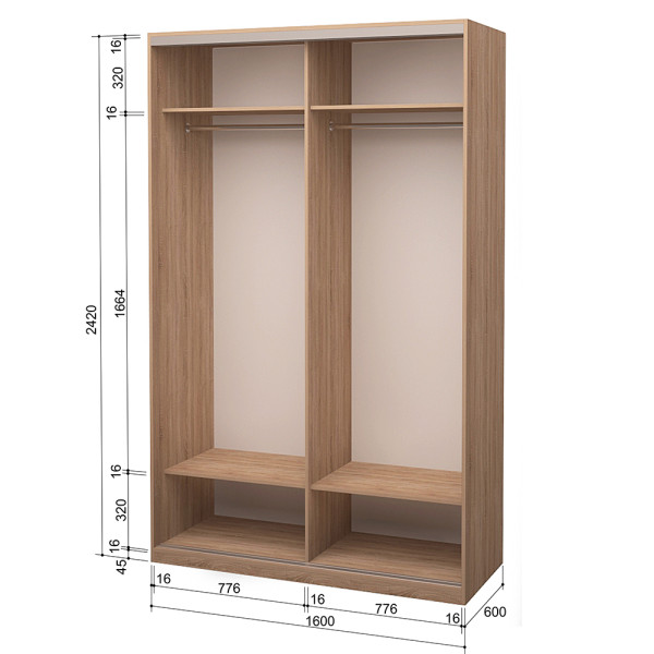 Шкаф-купе ROKO 2 двери (2 зеркала) 2.22.242.60-1 (1600*600*2420Н)
