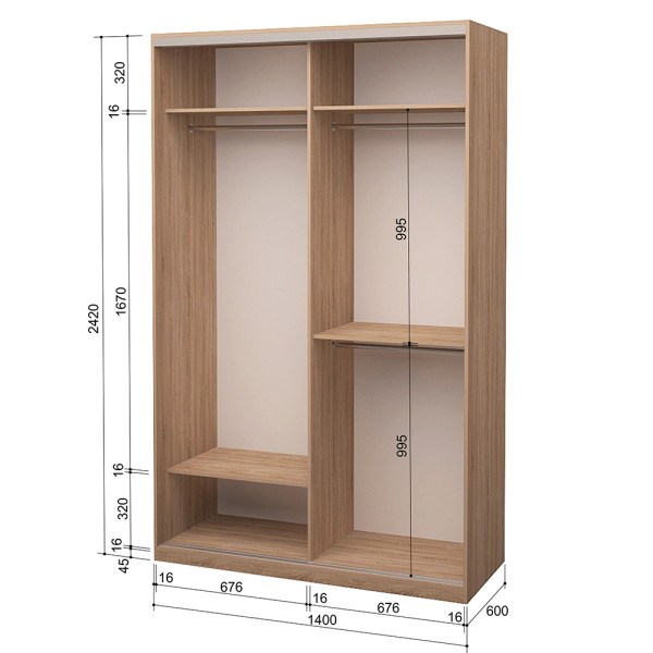 Шкаф-купе ROKO 2 двери (2 зеркала) 2.22.242.60-3 (1400*600*2420Н)