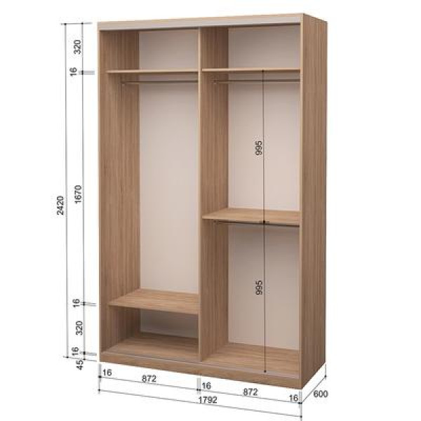 Шкаф-купе ROKO 2 двери (2 зеркала) 2.22.242.60-3 (1792*600*2420Н)