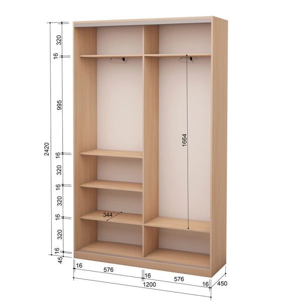 Шкаф-купе ROKO 2 двери (2 зеркала) 2.42.242.45-2 (1200*450*2420Н)